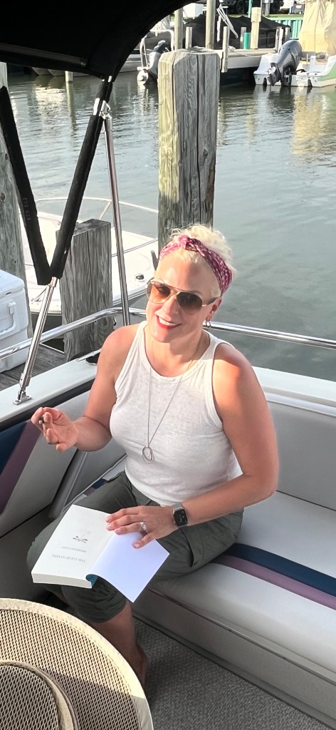 Picture: my first book signing! On my dad’s boat, lol. With four other people. Have to start somewhere!